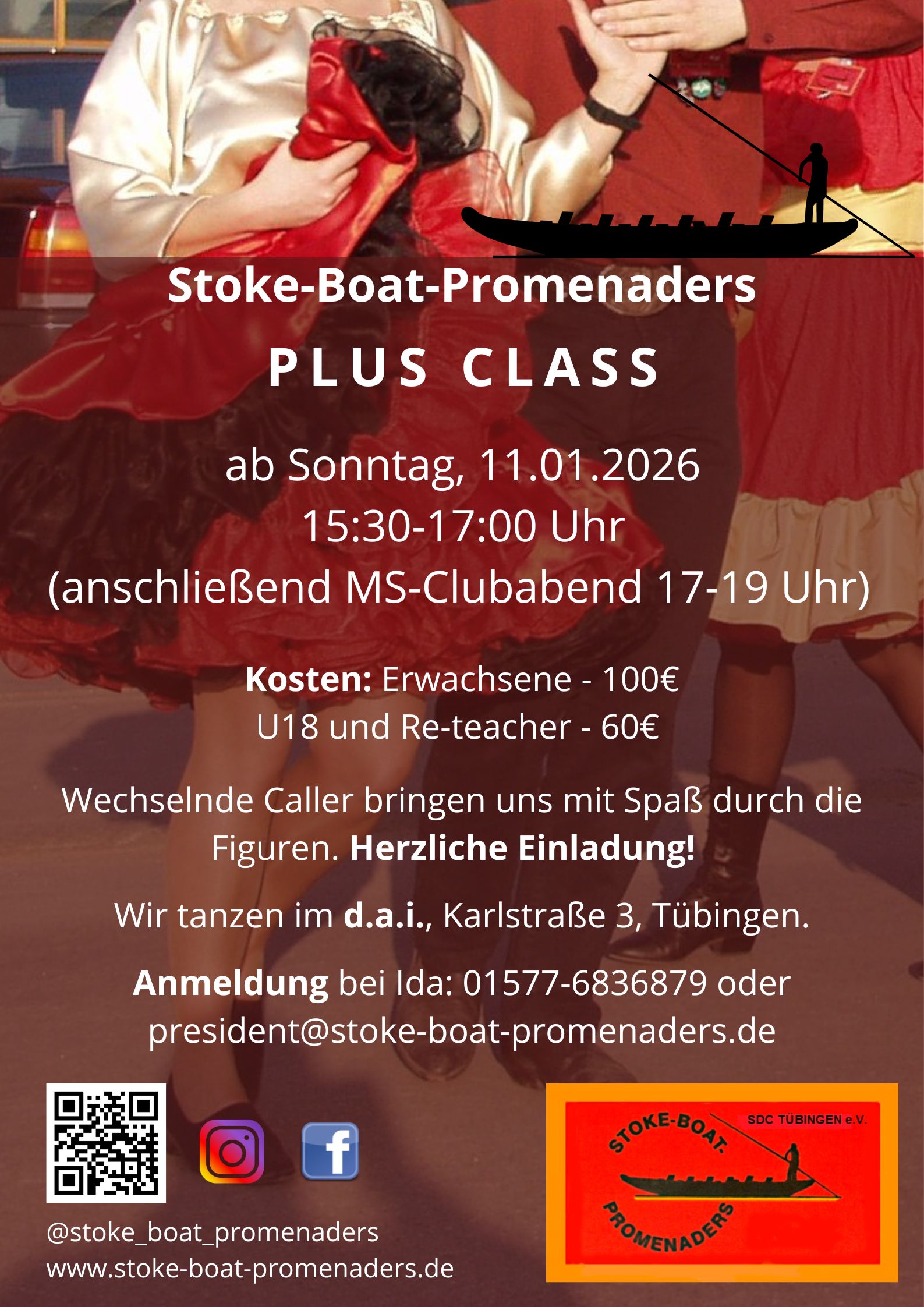 Du tanzt bereits Mainstream und willst mehr? Dann schnapp dir deine Tanzschuhe und komm zu unserem neuen PLUS-Kurs der Stoke-Boat-Promenaders in Tübingen! Ab dem 11. Januar 2026 heißt es wieder: Diamond Circulate, Load the Boat und jede Menge Spaß mit wechselnden Callern.